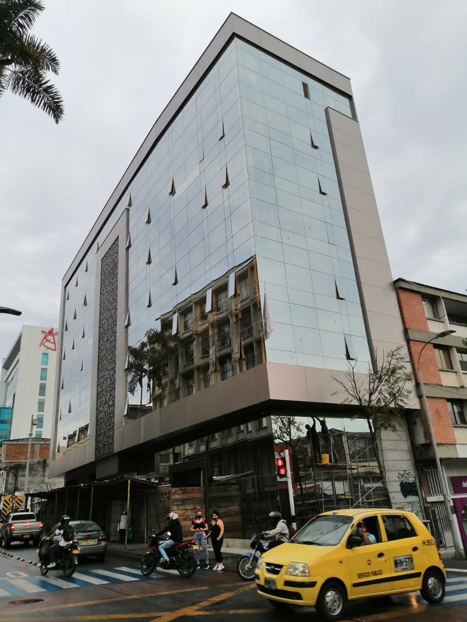 Fachada aluminio compuesto champaña y sistema fachada piel de vidrio serie 45+ vidrio 5+5 pv dorado