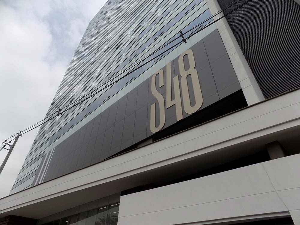 Señalización Ed. Vivienda BQ 76 A, Medellín, Antioquia. Lobby Acceso Edificio Comercial S48 Tower, Envigado, Antioquia.