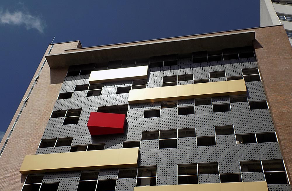 Interior Ed Parqueaderos Tranvía, Medellín. Fachada Clínica Oftalmológica Santa Lucía.